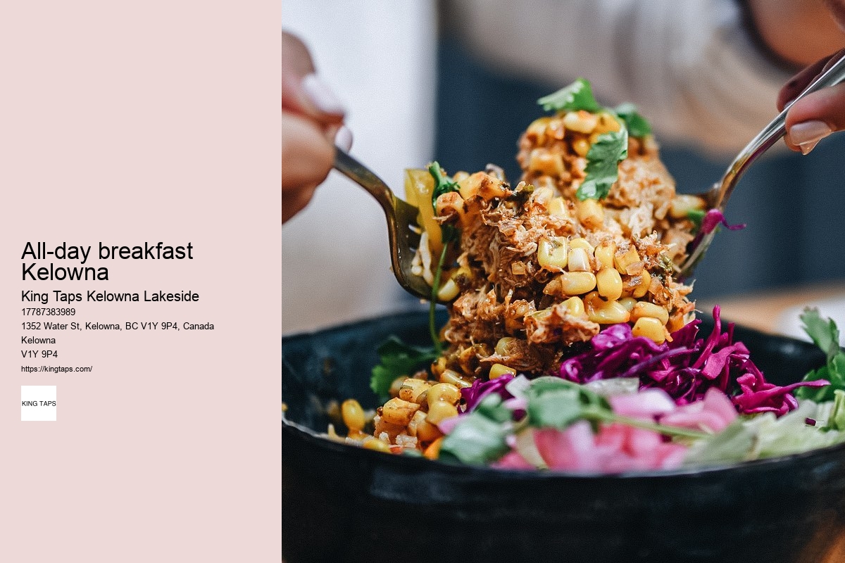 What sets these pizzas apart is the wood-fired oven that gives them a distinctive char and smoky flavor, impossible to replicate with standard cooking methods. To make the most out of your lakeside culinary journey at King Taps Kelowna, it's essential to plan your visit thoughtfully. From the personalized service to the exquisite culinary creations, your experience will be nothing short of remarkable. You're immediately enveloped in a warm, inviting atmosphere that's both elegant and relaxed. Text before the meta title text for each paragraph All-day breakfast Kelowna Text after the meta title text paragraph