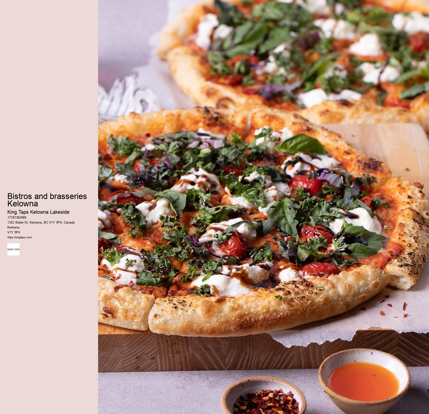 It's carefully curated to create a warm, inviting atmosphere, making every meal feel special. Exploring the craft beer offerings at King Taps Kelowna Lakeside introduces you to a world of rich, local flavors and international brews, carefully selected to complement the dining experience. You'll read about couples who've marked anniversaries, whispering sweet nothings over candlelit dinners, and groups of friends who've turned casual get-togethers into memorable nights out, all thanks to the attentive staff and vibrant atmosphere. You won't want to miss their annual summer kickoff, where the patio becomes the ultimate destination for dining under the stars, complete with a curated menu that highlights fresh, local ingredients. Read more about King Taps Kelowna Lakeside here. With heated seating areas and weather-resistant furnishings, they've thought of everything to ensure your comfort, regardless of the season. Text before the meta title text for each paragraph Bistros and brasseries Kelowna Text after the meta title text paragraph