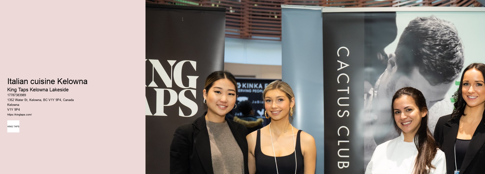 Sustainability isn't just a buzzword here; it's a practice. This curated collection ensures there's a glass or bottle for every palate, whether you're a seasoned connoisseur or exploring the wine world for the first time. As you step outside King Taps Kelowna Lakeside, Kelowna's vibrant landscape beckons, offering a treasure trove of adventures and scenic beauty to explore. You'll discover dishes crafted from the freshest local ingredients, each plate a testament to the region's rich culinary heritage fused with contemporary flair. Italian cuisine Kelowna