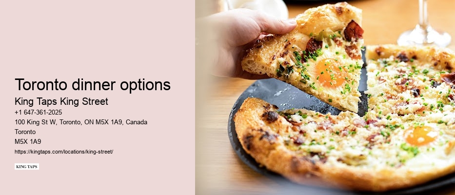 Lastly, come with an appetite and an open mind. Text before the meta title text for each paragraph Toronto dinner options Text after the meta title text paragraph Stick around as we explore what makes this expansion a game-changer for locals and visitors. Whether you're there to catch up with friends or make new ones, you'll find the setting perfect for both. As you glance around, you'll notice the eclectic mix of patrons that King Taps attracts.