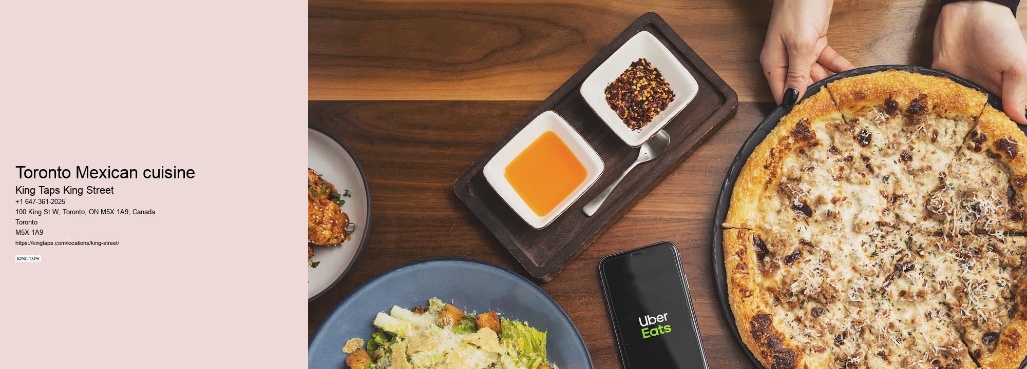 Our sauce is a secret blend of tomatoes and herbs, simmered to perfection. Text before the meta title text for each paragraph Toronto Mexican cuisine Text after the meta title text paragraph Diving into the heart of King Street's culinary innovation, the chef unveils signature dishes that redefine gourmet dining. From the first glance, you'll notice the menu's dedication to blending traditional flavors with a modern twist, ensuring there's something for every palate.