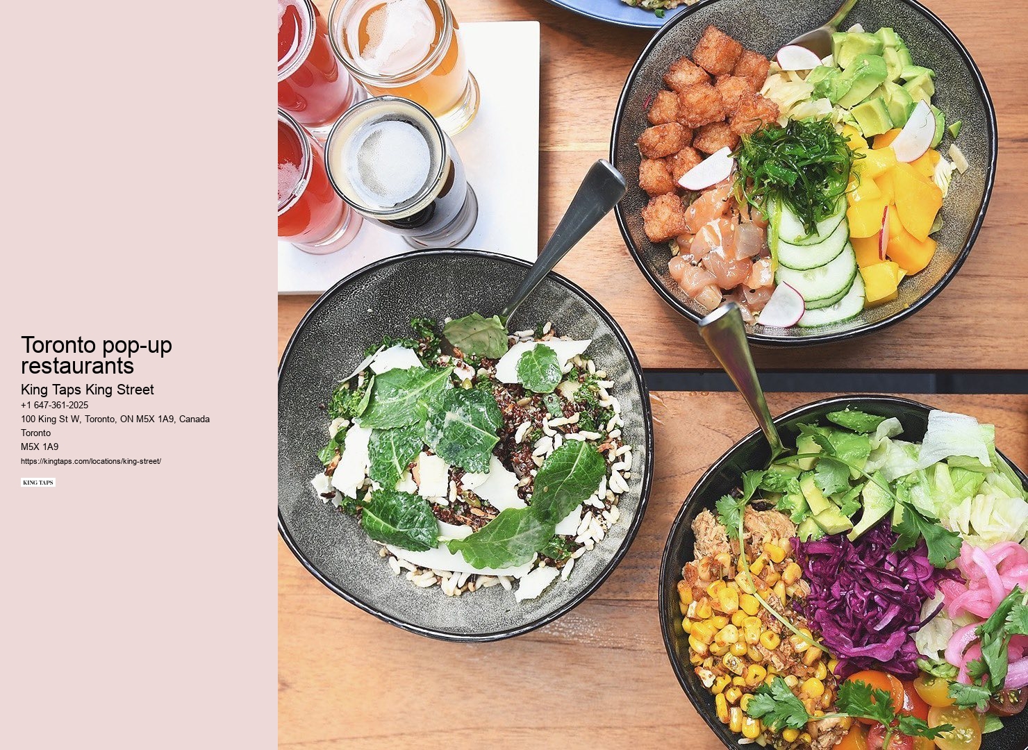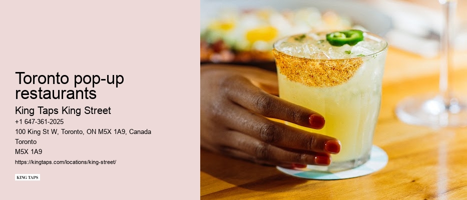 It's a place where memories are made, laughter is shared, and the city's pulse can truly be felt. Toronto pop-up restaurants They're constantly tasting, adjusting, and perfecting, driven by the belief that dining should be an adventure. After savoring King Taps' unique cocktail creations, you'll be equally captivated by the vibrant atmosphere that envelops you the moment you step inside. And remember, our prime location means you're always just a short walk from the best of King Street's vibrant scene.