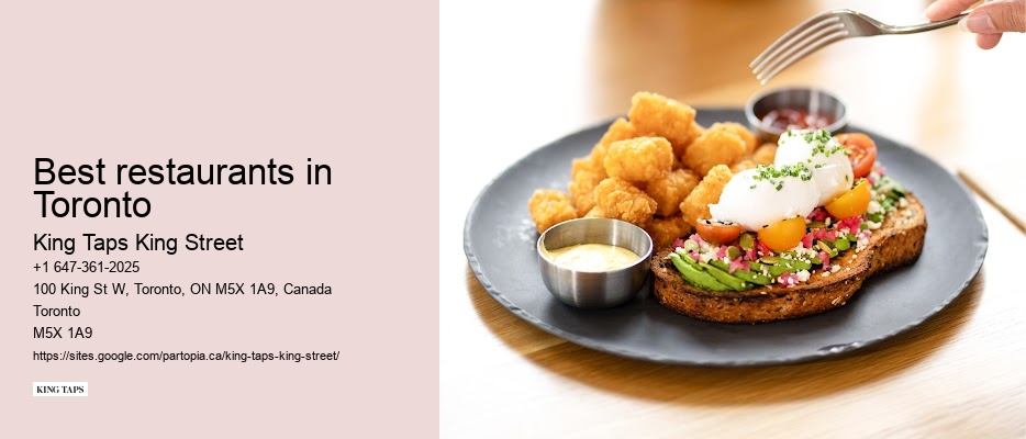 The blend of cozy lighting with the lively buzz of conversation creates a vibe that's just right for unwinding after a long day. Whether you're planning a birthday bash, a work function, or just a night out with friends, you'll find the perfect space to fit your group's needs. So, next time you're looking for a spot to catch the game, remember King Taps on King Street. Best restaurants in Toronto It's clear that every detail has been carefully curated to enhance your experience.