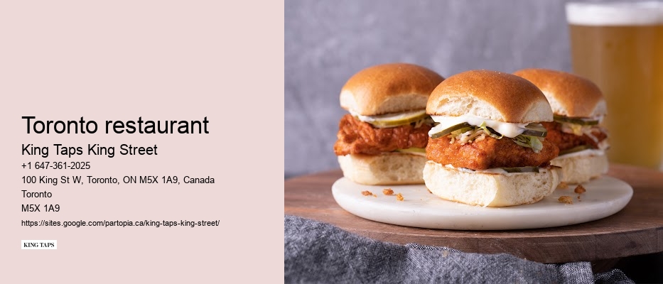 It's a fresh way to enjoy the best of Toronto's local bounty, one season at a time. It's clear they believe in using fresh, local ingredients, ensuring that every bite not only satisfies your hunger but also supports the community. Whether you're cheering on your favorite team or just here for the vibrant atmosphere, our exceptional service is what makes King Taps your go-to destination on King Street. Culinary Delights You're not just eating; you're embarking on a journey that tantalizes your taste buds and delights your senses.