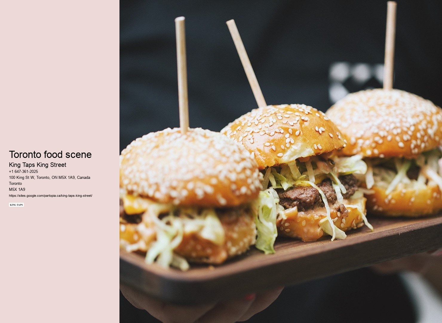 It's a fresh way to enjoy the best of Toronto's local bounty, one season at a time. It's clear they believe in using fresh, local ingredients, ensuring that every bite not only satisfies your hunger but also supports the community. Whether you're cheering on your favorite team or just here for the vibrant atmosphere, our exceptional service is what makes King Taps your go-to destination on King Street. Authentic Dining You're not just eating; you're embarking on a journey that tantalizes your taste buds and delights your senses.