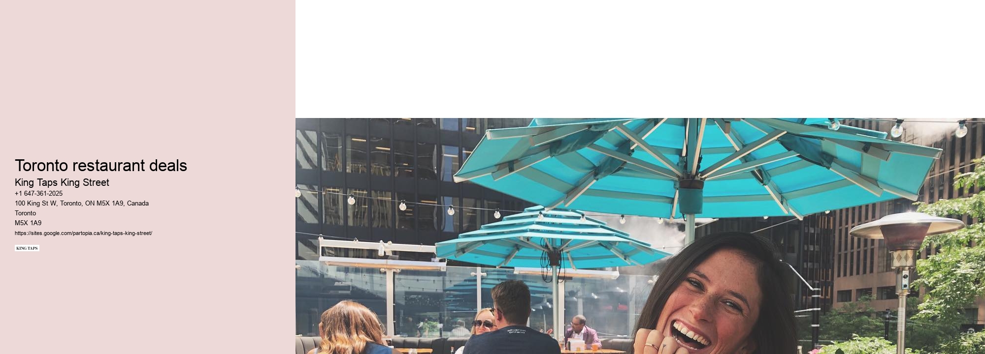 They know their stuff, from the perfect beer and pizza pairing to the story behind each brew. You're in for a treat with their renowned artisanal pizzas, each crafted with a unique twist that'll leave you craving more. Text before the meta title text for each paragraph Toronto restaurant deals Text after the meta title text paragraph And remember, our prime location means you're always just a short walk from the best of King Street's vibrant scene. Read more about Experience the Energy of Downtown Toronto at King Taps King Street here. Whether you were there to sample the gourmet food, browse through unique artisan stalls, or simply soak up the lively entertainment, there was no rush.