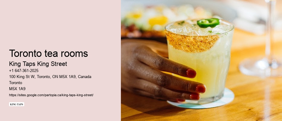 You'll also find that King Taps King Street offers an exquisite range of signature cocktails, each with its unique twist and flair. Read more about Experience the Energy of Downtown Toronto at King Taps King Street here. But it's not just about the music; King Taps goes all out with sports events too. Text before the meta title text for each paragraph Toronto tea rooms Text after the meta title text paragraph It's these combinations that set us apart and keep you coming back for more. They offer an impressive selection that's sure to please even the most discerning palates.