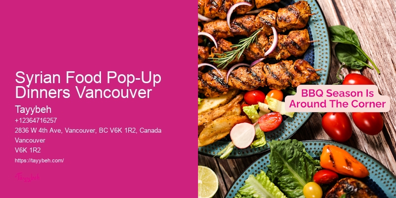 It's an invitation to celebrate the resilience, beauty, and community spirit of Syria, making every event an opportunity to learn, enjoy, and connect. Tayybeh's chefs have masterfully created a selection that highlights the rich, plant-based ingredients central to Syrian cuisine. Vancouver professional catering Vancouver's public transport system can conveniently get you to Tayybeh, but if you're driving, checking for nearby parking facilities is a smart move.